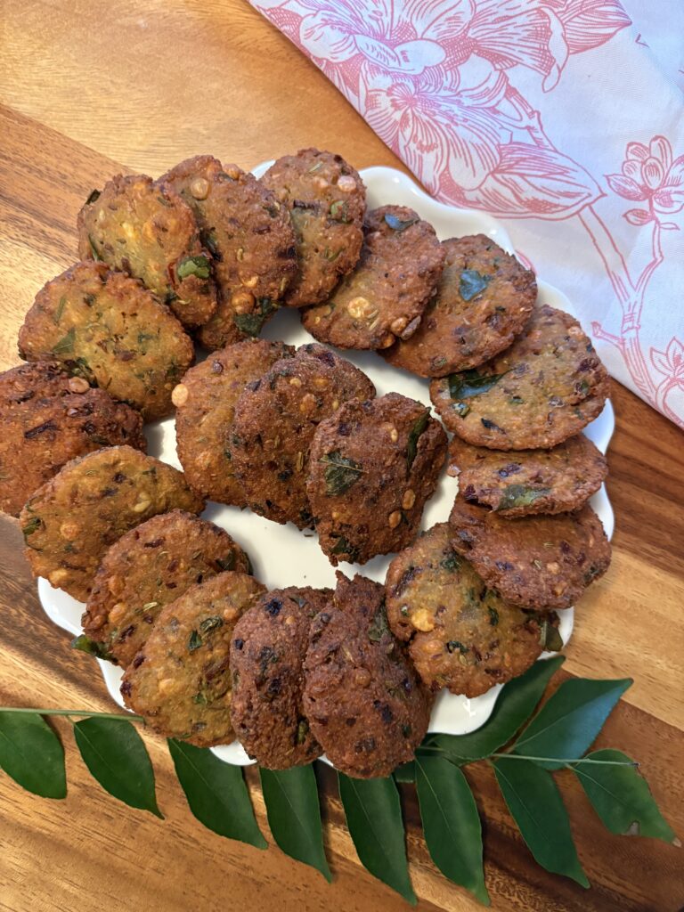 Masala vada is a crispy lentil fritter that makes for an excellent snack with tea. This high-protein, gluten-free, popular South Indian vada makes a delicious and delightful side alongside any South Indian meal.